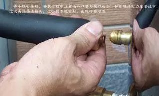 接好冷媒管,擰緊螺絲時力度要適中