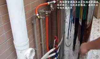 用鋁塑管連接水箱冷水、熱水出口到相應(yīng)的管子中