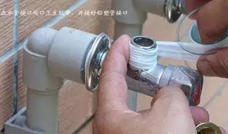 在水管接口上纏上膠帶,并接好鋁塑管接口