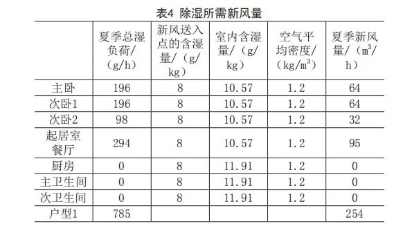 從表4可知,L3=254m3 /h。綜合L1、L2、L3,該戶型所需新風(fēng)量不得低于254m3/h。